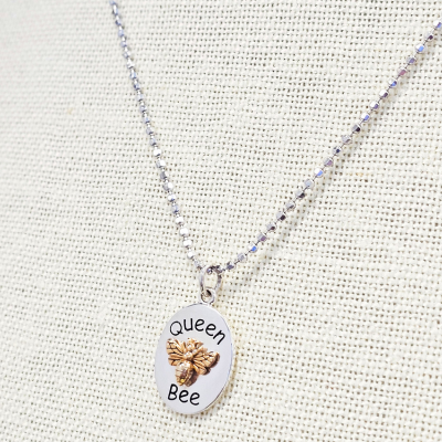 Oval Queen Bee Bronze and Sterling Silver Coin Necklace #7979