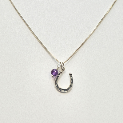Lucky Horseshoe and Amethyst Gemstone Necklace In Sterling Silver, #8000